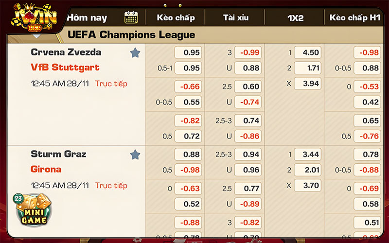 - Mini Poker: Chọn mức cược và trải nghiệm trò chơi với 5 quân bài.
